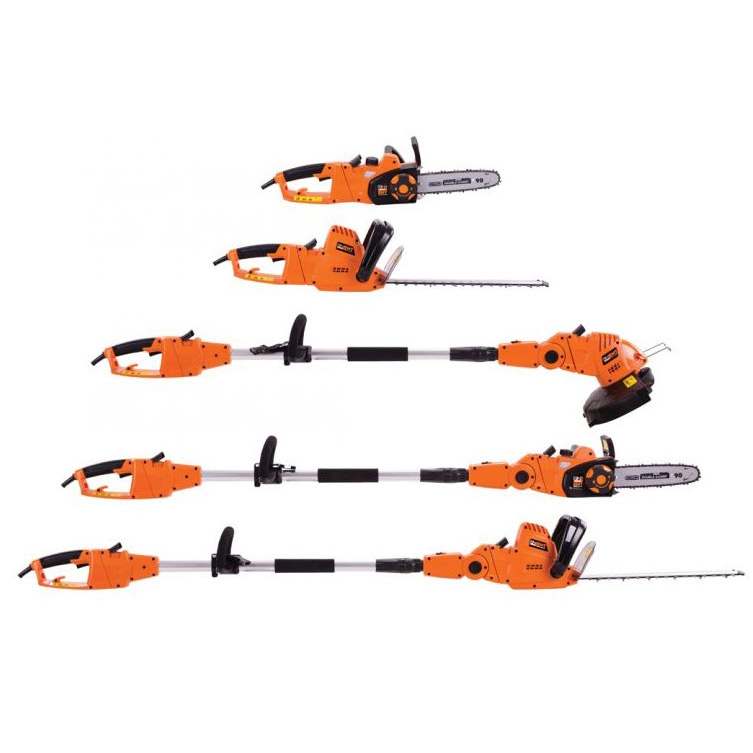 EMT 5 in 1 se sastoji od pet elemenata koji se sa lakoćom pretvaraju u trimer za travu; trimer za živu ogradu, teleskopski trimer za živu ogradu; električnu testeru i teleskopsku električni testeru.