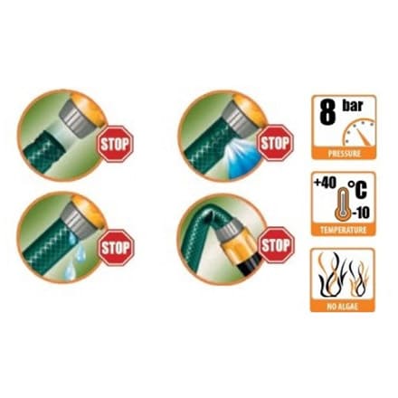 Crevo za navodnjavanje s pojačanim tekstilnim ojačanjem od poliestera visoke čvrstoće. DUBLE THICK SISTEM® sistem izbjegava uobičajene probleme s kojima se susreću pletena creva niske debljine . Dvostruka debljina na oba kraja obezbeđuje prijanjanje vodeno propusnog spoja sa spojnicama i savršenu nepropusnost. Namenjeno korisnicima za srednju i zahtevniju upotrebu