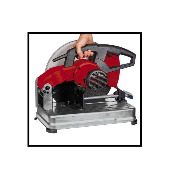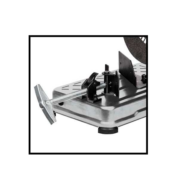 Podesivi zastoj visine omogućava precizno podešavanje visine košenja. Zaključavanje sečiva osigurava sigurnu promenu sečiva. Za optimalan rad rezni točak ima prečnik od 355 x 25,4 x 3,2 milimetra. Mehanizam za stezanje sa blokadom sa brzim otpuštanjem omogućava obavljanje rezova za određivanje veličine ugla od -15 stepeni do 45 stepeni. Izbacivač piljevine štiti okolno područje od užarenih varnica. Mašina za odsecanje metala Einhell opremljena je držačem alata za isporučeni imbus ključ, plus transportnim nosačem i dodatnom ručicom za transport.