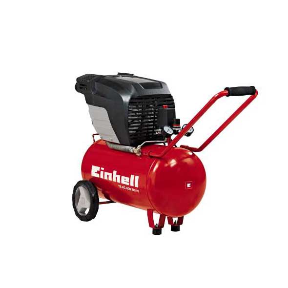 Vazdušni kompresor TE-AC 400/50/10 je visokokvalitetni kompresor koji ambicioznom uradi sam entuzijasti pruža širok spektar opcija, a kombinuje solidne podatke o performansama sa visokim standardom izrade. Uređaj se može savršeno prilagoditi mnogim poslovima do 10 bara pomoću reduktora pritiska. Kompresor se isporučuje sa dugotrajnom pumpom podmazivanom uljem i dvostrukom kompresorskom jedinicom za visoku brzinu dovoda vazduha. Nivo ulja se može proveriti u bilo kom trenutku preko integrisane merne šipke. Kontrolisani radni pritisak kompresora TE-AC 400/50/10 se podešava pomoću reduktora pritiska, koji je prikazan manometrom, i odvodi se kroz brzu spojnicu. Manometar i brza spojnica su takođe dostupni za rad sa nekontrolisanim pritiskom rezervoara. Odgovarajući pritisak se u svakom trenutku može očitati na velikim, lako čitljivim indikatorima pritiska. Za mobilnost i jednostavan transport nalazi se transportna ručka i dva velika točka. Kondenzat se ispušta iz rezervoara kroz čep za odvod, što čini održavanje jednostavnim. Noga koja apsorbuje vibracije sprečava mehaničke udare i smanjuje stvaranje buke. Za najbolju moguću sigurnost korisnika postoji nepovratni ventil i sigurnosni ventil. Čvrst i dugotrajan rezervoar od 50 litara poseduje izdašne rezerve za duge radne sesije i dolazi sa 10-godišnjom garancijom protiv rđanja.