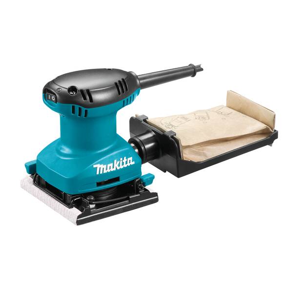 Vibraciona brusilica Makita BO4557 Čvrsta aluminijumska papuča.Kompaktna i lagana konstrukcija.Omogućuje udobno rukovanje i u horizontalnom i u položaju iznad glave.Ugrađena jedinica za odvođenje prašine za povezivanje na cev za odvod prašine ili Makita usisivača.